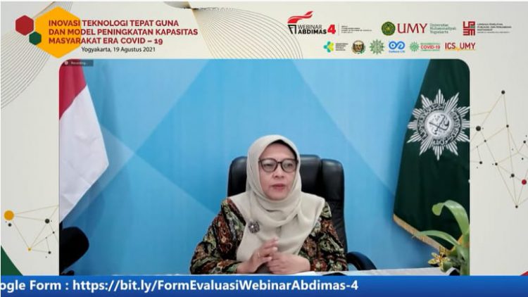 Yogyakarta, InfoMu.co – “Jika negara dalam kondisi sulit maka Muhammadiyah ‘Aisyiyah adalah yang terdepan. Bukan untuk riya tetapi kehadiran persyarikatan selalu terdepan untuk merawat dan menjaga negara kita Republik Indonesia ini dari berbagai ancaman dan juga dari berbagai musibah.” Hal tersebut disampaikan Ketua Umum Pimpinan Pusat ‘Aisyiyah, Siti Noordjannah Djohantini dalam acara Webinar Abdimas 4 tahun 2021 Universitas Muhammadiyah Yogyakarta (UMY).