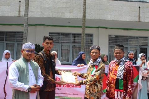 Penyerahan donasi dilakukan bersamaan dengan Pengajian Bulanan Sekaligus Sholat Ghaib. Acara digelar dengan tema “Mengingat Kembali Palestina negara pertama mengakui kemerdekaan Indonesia”.