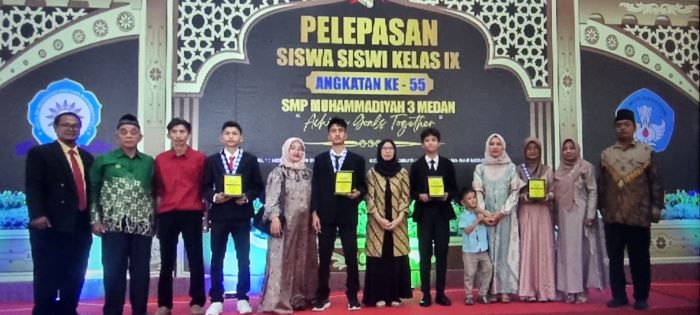 Medan, InfoMu.co –  SMP Muhammadiyah 3 Tanjung Sari Medan kembali melepas (wisuda) sebanyak 258 pelajar angkatan ke-55, Rabu 10/5. Pelepasan yang berlangsung di Asrama Haji itu ditandai dengan pemberian apresiasi kepada pelajar yang berprestasi. Pelepasan 258 pelajar SMPM-03 Tanjung Sari itu mengambil tema Achieve Goals Together. Dari 258 pelajar yang diwusuda ada 115 pelajar laki-laki dan 143 pelajar putri.