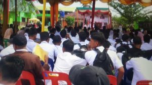 Pelepasan siswa kelas XII ditandai dengan atraksi hiburan dan tapaksuci dari siswa Snakma. Tampak hadir pengurus Muhammadiyah di kawasan Tanjung Selamat Perjuangan dan para orangtua. (masnal rivai)