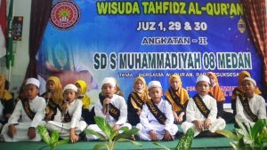 Medan, InfoMu.co – Setelah sukses melakukan tahfidz camp sebanyak dua kali, kini sebanyak 74 pelajar SM Muhammadiyah 08 Medan, Jalan Bromo, Medan melakukan wisuda tahfidz untuk Juz 1, 29 dan 30, Rabu (20/4). Wisuda Tahfidz dilakukan setelah SDM-08 itu menjadi bagian dari keunggulan sekolah Muhammadiyah itu.