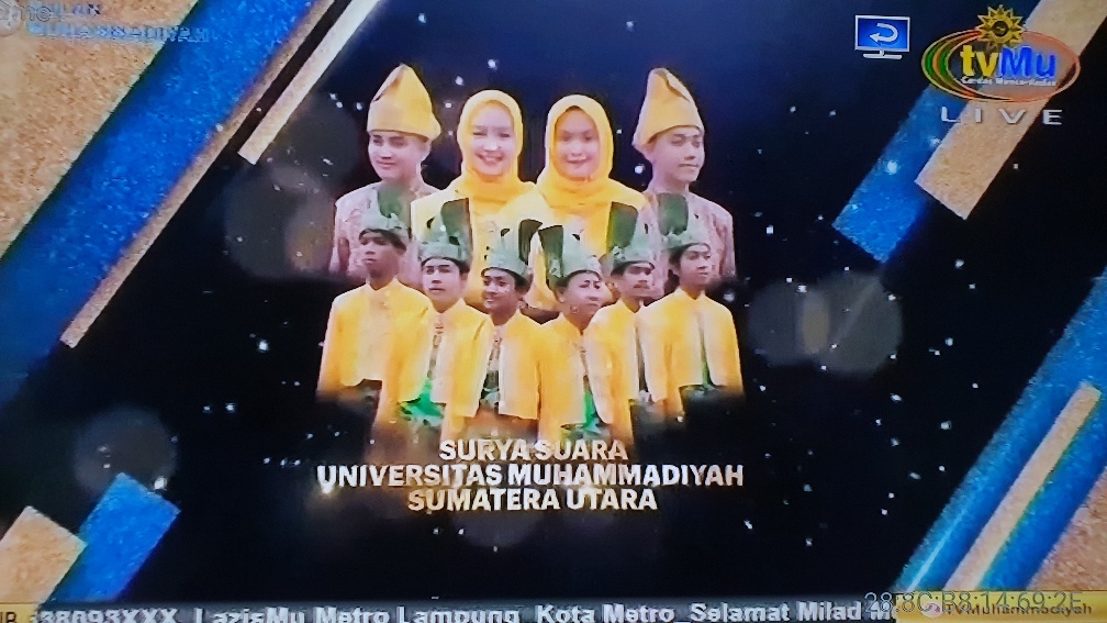 Dari sederet artis Kampus Muhammadiyah itu, tampak Surya Suara Universitas Muhammdiyah Sumatera Utara (UMSU). Mengenakan kustum khas melayu, hampir 20 personil Surya Suara UMSU itu tampil di panggung untuk memberi rasa gembira pada hari ke109 Muhammadiyah. Kali ini, UMSU menyajikan ‘Seni Berbalas-Pantun’. Tentu saja tampilan lagu, tari dan pantun menjadi pewarna yang manis dari UMSU pada milad Muhammadiyah.