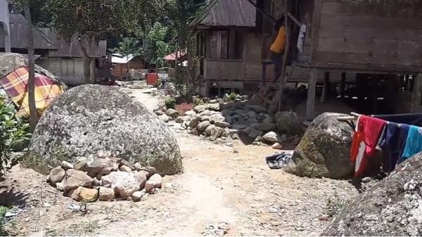 Untuk menuju ke desa ini, warga harus melewati jalan setapak yang sudah dipenuhi semak belukar. Aksesnya hanya bisa berjalan dengan jarak kurang lebih 5 kilometer untuk keluar masuk desa.