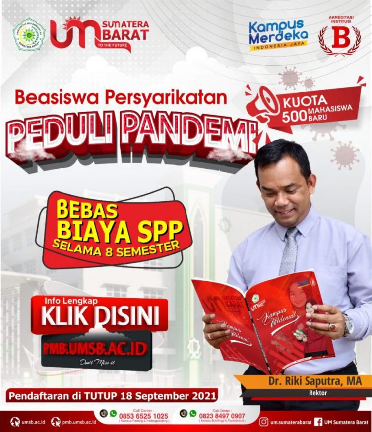 Melihat hal tersebut, Universitas Muhammadiyah Sumatera Barat yang berkomitmen untuk menjadi perguruan tinggi yang memiliki Social Profit dan bukan Profit oriented memberikan beasiswa khusus kepada calon mahasiswa baru baik yang berasal dari keluarga Muhammadiyah atau yang bersifat umum untuk dapat melanjutkan pendidikan kejenjang yang lebih tinggi. Karena UM Sumbar berkeinginan semua masyarakat dapat mengenyam bangku perkuliahan. Beasiswa ini diberi nama Beasiswa Persyarikatan Peduli Pandemi.