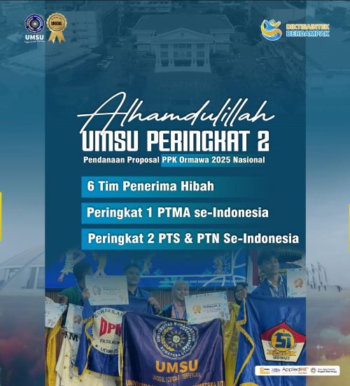 INFOMU.CO | Medan – Universitas Muhammadiyah Sumatera Utara (UMSU) raih hasil gemilang dalam Program Penguatan Kapasitas Organisasi Kemahasiswaan (PPK Ormawa) 2025 dengan menempati peringkat kedua nasional bersama beberapa perguruan tinggi lainnya dan menjadi perguruan tinggi terbanyak di Sumatera dalam jumlah proposal yang lolos pendanaan.