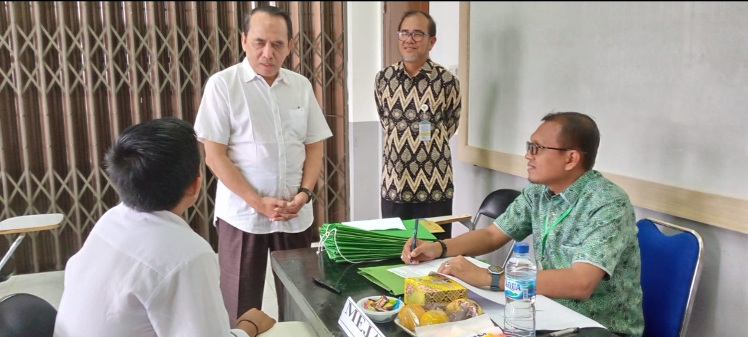 Wakil Rektor III Universitas Muhammadiyah Dr. Ir. H. Zardan Araby, M. T yang didampingi oleh Kepala Bagian Umum Nuzulman, Surya Fatma, S.E., M. Si. Lenny Handayani Marza, S.P., M.P serta Ressa Elfiani, S.E. memantau langsung kegiatan interview tersebut.