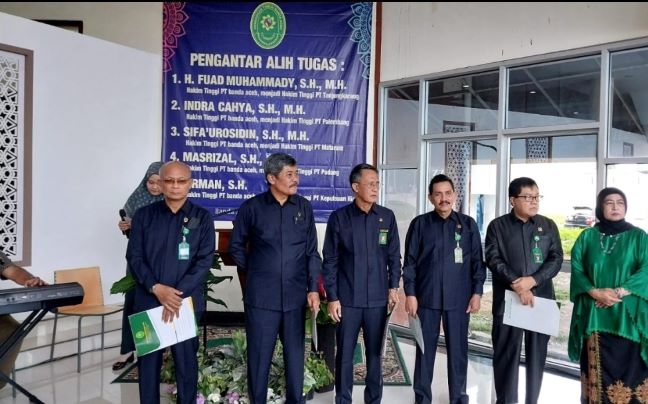 Kelima Hakim Tinggi tersebut, yaitu : 1. H. Fuad Muhammady, S.H., M.H. yang mutasi menjadi Hakim Tinggi pada Pengadilan Tinggi (PT) Tanjung Karang. 2. Indra Cahya, S.H., M.H. mutasi menjadi Hakim Tinggi di PT Palembang Provinsi Sumatera Selatan, 3. Sifa’Urosidin, S.H., M.H., mutasi menjadi Hakim Tinggi ke PT Mataram Provinsi NTB, 4. Masrizal, S.H., M.H., mutasi menjadi Hakim Tinggi Padang di Sumatera Barat, dan 5. Firman, S.H., mutasi menjadi Hakim Tinggi PT Kepulauan Riau.